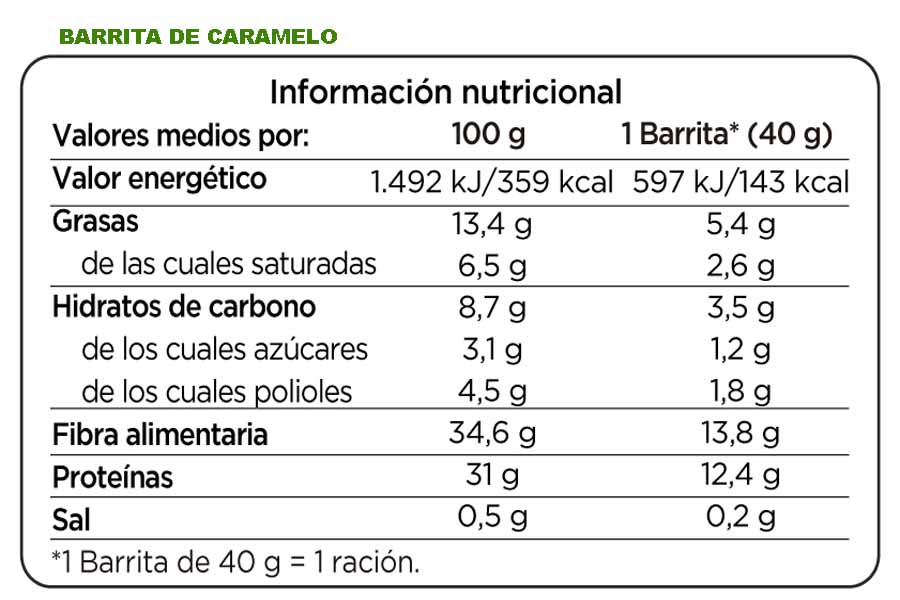 Barrita con alto contenido en proteínas sabor caramelo y cobertura de sustituto de chocolate con leche. Contiene